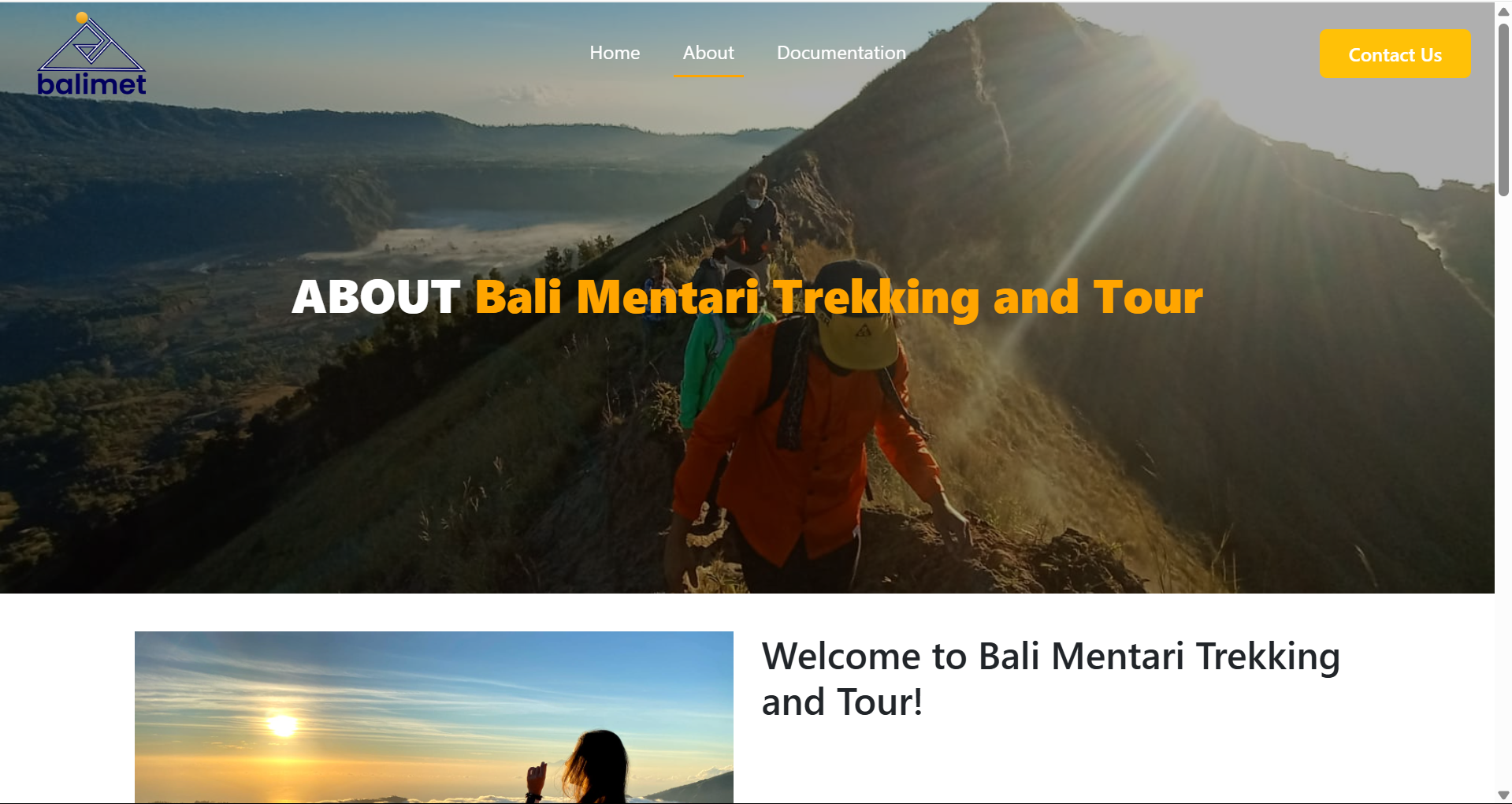 Website for Bali Mentari offering Mount Batur trekking and jeep tours with sunrise views, local guides, and easy booking.