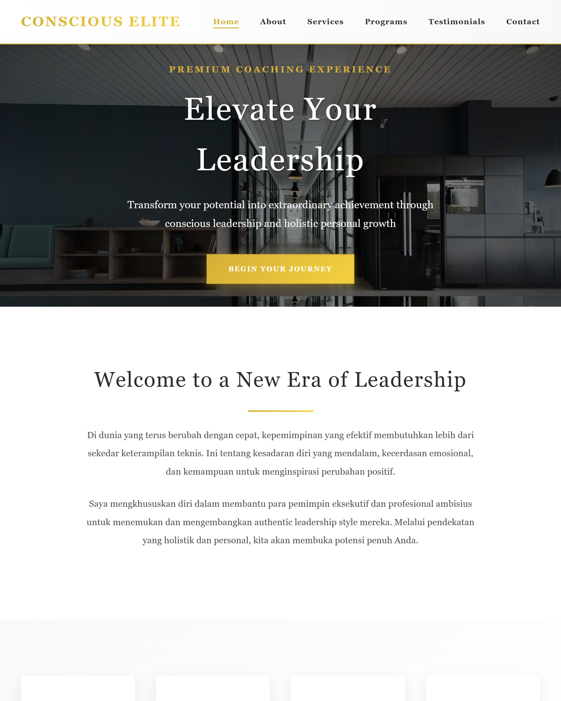 Website for Conscious Leaderships focused on leadership development, self-awareness, programs, and workshops.